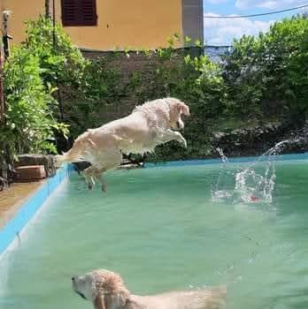 Disponiamo anche di una PISCINA 3x5 mt, di acqua fresca per nuotare a loro dedicata e mantenuta con cloro!