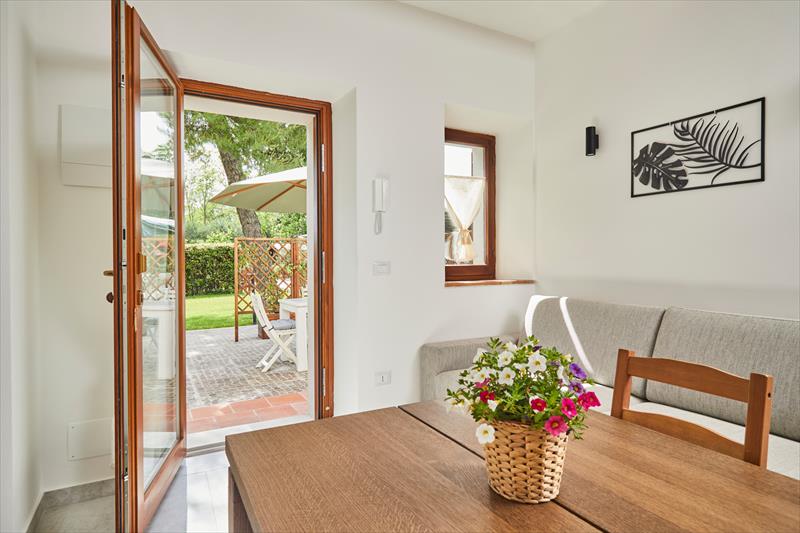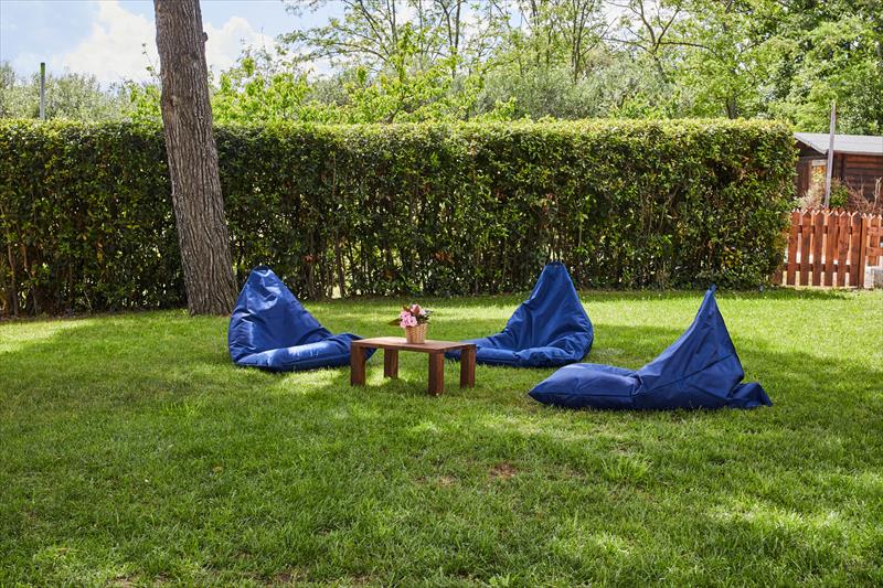 Con le sue piante, i fiori, l’uliveto e gli alberi da frutto, il parco è un’esplosione di colori e profumi. Al suo interno una zona relax con amache e comode poltrone pouf dove leggere e godere del giardino e uno spazio dedicato agli amici a quattro zampe.