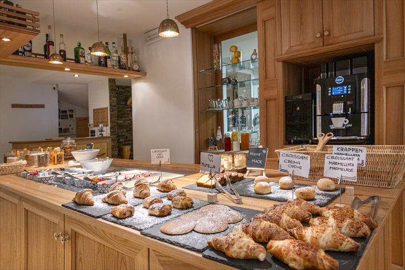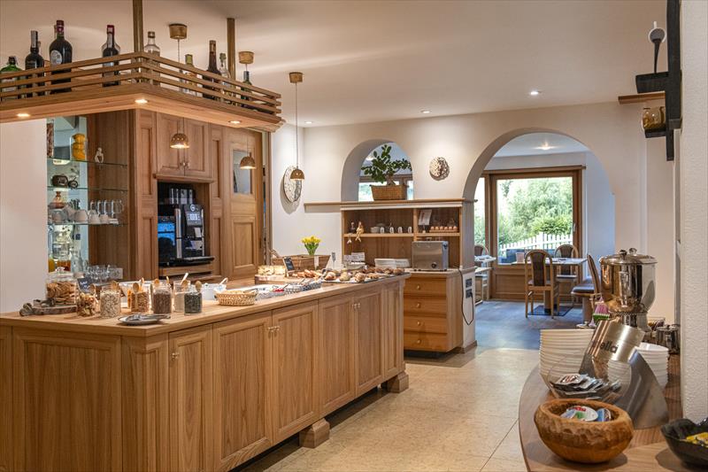 Serviamo il buffet delle colazioni con: dolci, vari tipi di pane fresco, selezioni di salumi, tipico speck, frutta e verdura, succhi di frutta, marmellate nostrane e yogurt con vari muesli. Accompagnando il tutto con un buon caffè o con la vostra bevanda preferita.