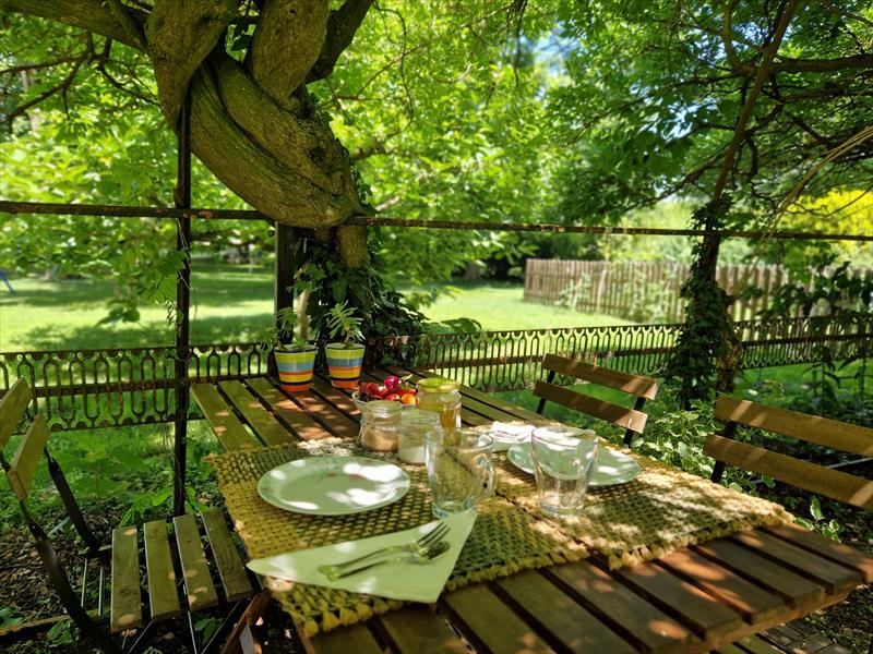 Giardino completamente recintato e veranda a disposizione per relax. Gazebo e tavoli in giardino per colazione all’aperto.