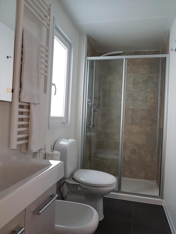 Composte di una camera matrimoniale, una camera con letti singoli, soggiorno, angolo cottura attrezzato, bagno con doccia. La mobile-home viene consegnata con lenzuola e asciugamani.