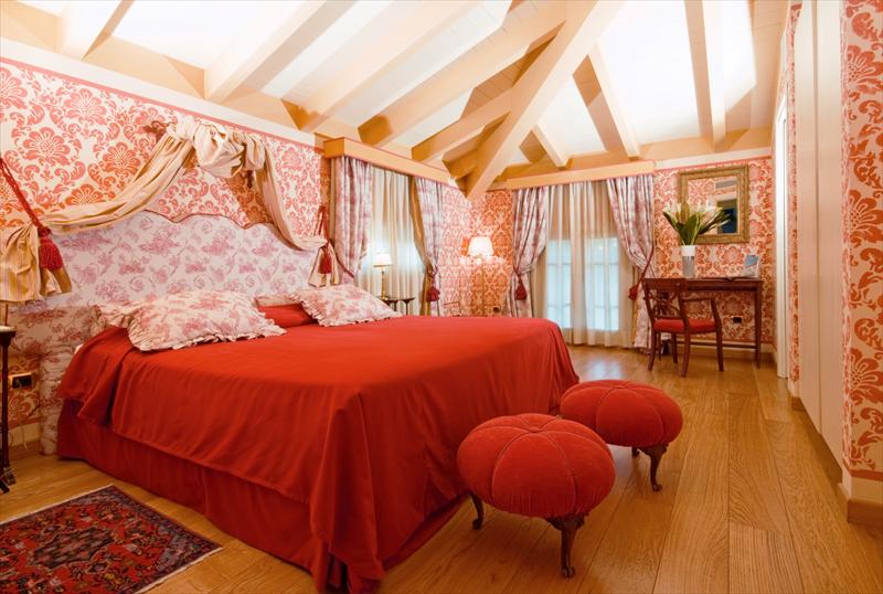 Dispone di 9 camere e 1 appartamento tutte arredate in maniera differente, con mobili antichi, letti a baldacchino, e bagni in marmo di Carrara i cui colori danno il nome ai diversi ambienti.