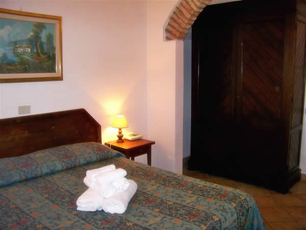 Le camere arredate in arte povera toscana offrono servizi privati, TV color e telefono diretto.