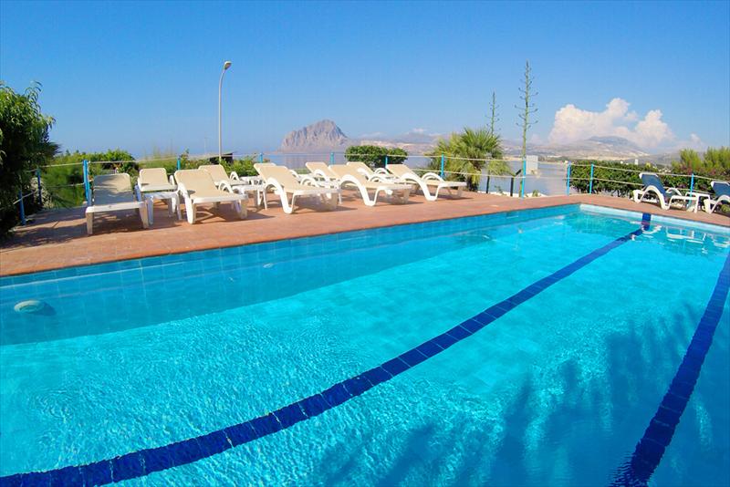 Il residence vanta un vista mozzafiato, quello di Monte Cofano che si erge dal mare, panorama che potete ammirare dalla piscina arredta di sdraio e lettini prendisole. Disponibile parcheggio scoperto gratuito. Tipologie di appartamenti: